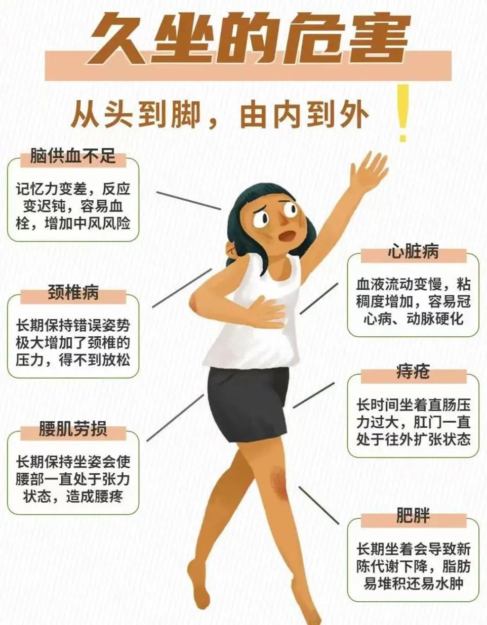 你是不是每天久坐超过8小时,走到哪坐到哪儿?看看这些“久坐*病”你中招了几个?