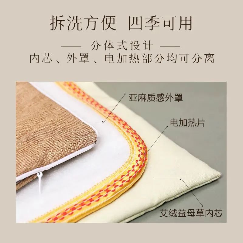 如果嫌热也可以把加热层取出来,当作普通的艾绒坐垫使用这样一年四季都可以用!