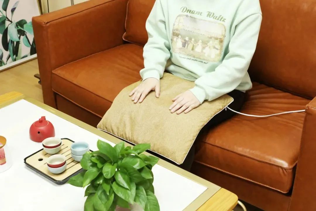 往上面一坐,温暖由下而上把整个人包裹起来,体感温度维持在45℃左右(艾灸科学合理的温度,也根据自身可调)。