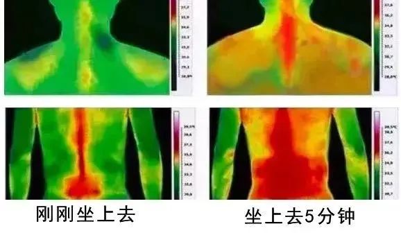 而我们实测了这款坐灸这款艾绒益母草坐垫前后的热力学实验图,能明显看到从腰腹部连贯到脊椎处都有热传导,效果值得信赖