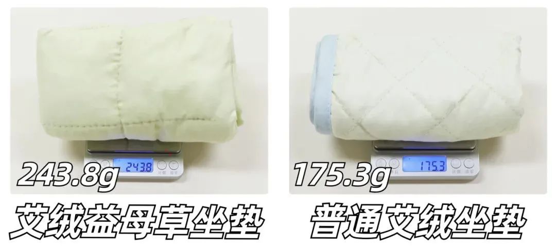 区别于别的偷工减料,这款坐垫真的是【加工加料】的良心品牌,用料是真的足,比市面上的艾绒坐垫足足厚了超过60g!!!