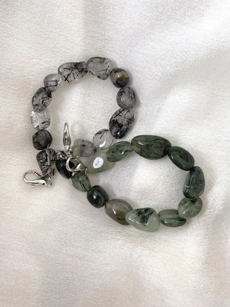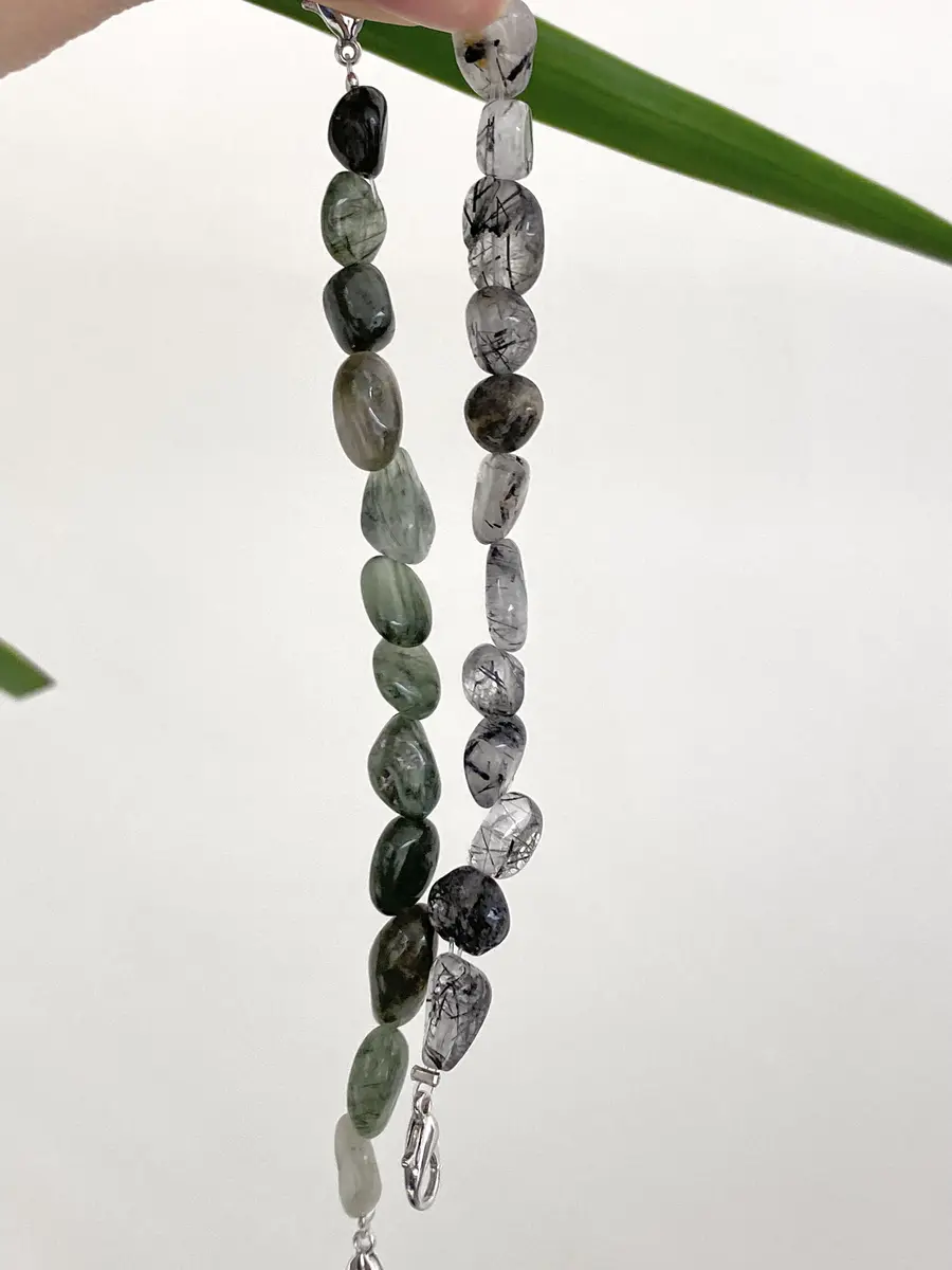 值得一提的是领口串珠的装饰,这个串珠是选用天然发晶组成,纯手动打造,每一串都是独一无二的,到手分量感非常足,有手巧的姐妹还可diy延长成手链佩戴~