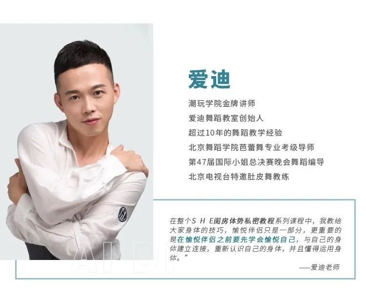多年来丰富的舞蹈教学经验,让爱迪老师从各舞种中提炼出了一套可以直接运用在亲密互动中的动作技巧。