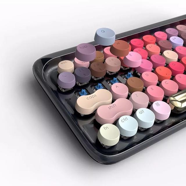 这就是洛斐炫彩“眼影”键盘。造型沿用洛斐一贯的复古打字机造型,清脆机械青轴键帽,敲击起来“啪嗒啪嗒”干脆利落,节奏感段落感超强,是复古文艺狗们挡不住的诱惑,圆点机械键盘配有超宽泛的系统兼容性!Mac、iOS、windows、Android 都可以完美兼容。