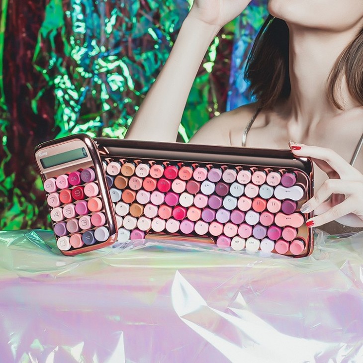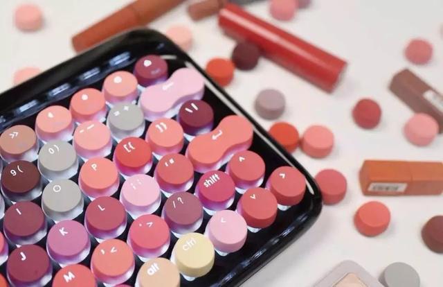 79个键帽,79种颜色!W键是纪梵希304色号,T键是阿玛尼红管405,看这一个个圆圆的小键帽,是不是感觉几十只不同色号的口红排排坐来等你翻牌?你能忍住,算我输!