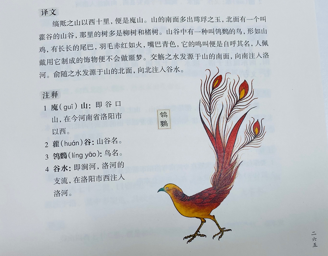“ 廆山有鸟,如山鸡,长尾赤如丹火”
