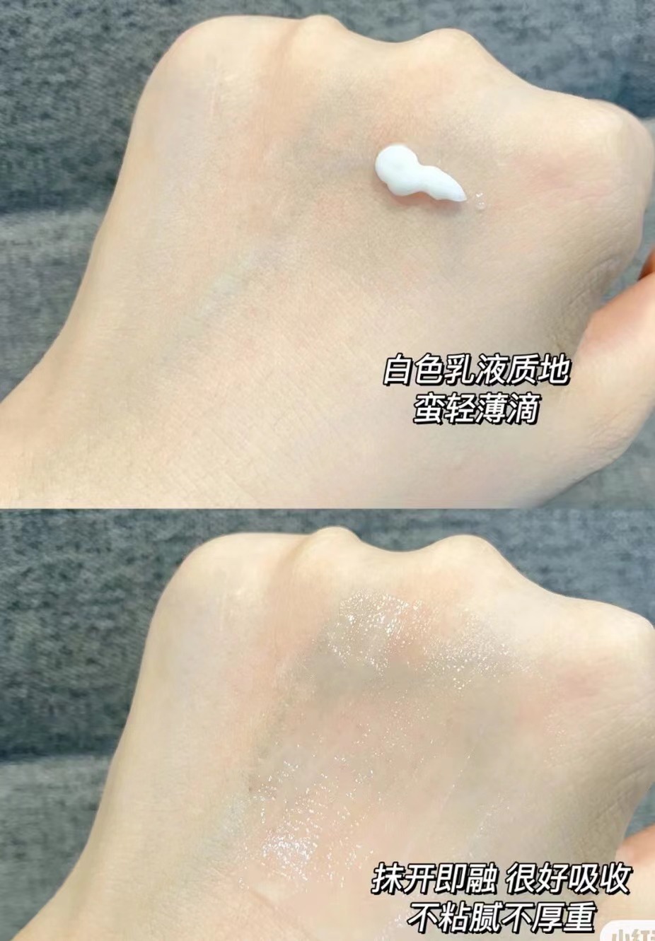 乳液质地,很好推开,轻薄易吸收
