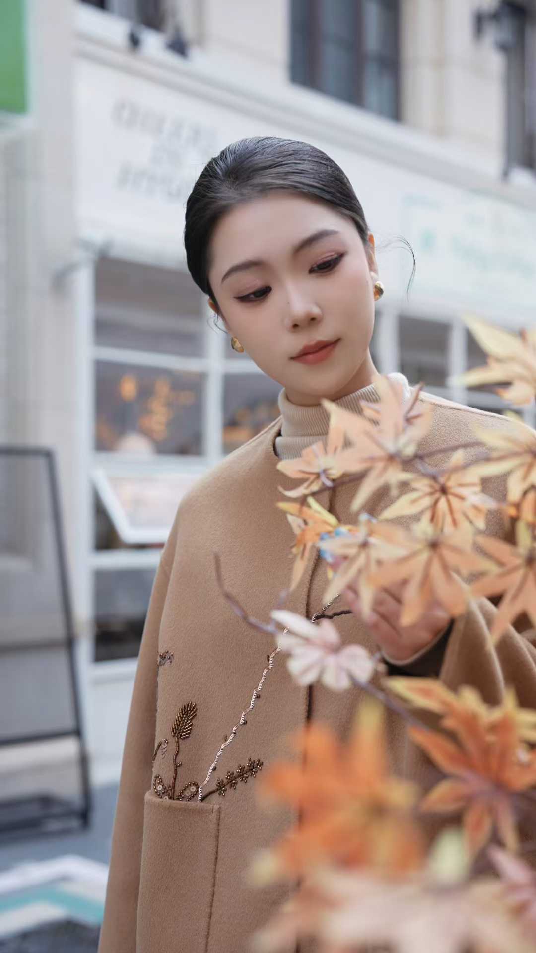 植物刺绣羊绒羊毛短大衣【ED4B798】