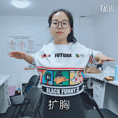 做法:挺胸收腹站立,双臂自然下垂,两脚分开比肩宽;弯曲两臂,置于胸前,保持与地面平行,掌心向下,两臂用力向两侧摆动。扩胸时缓缓吸气,曲臂时缓缓呼气。