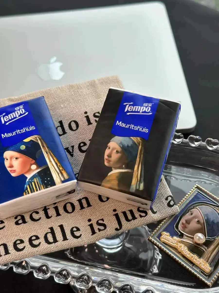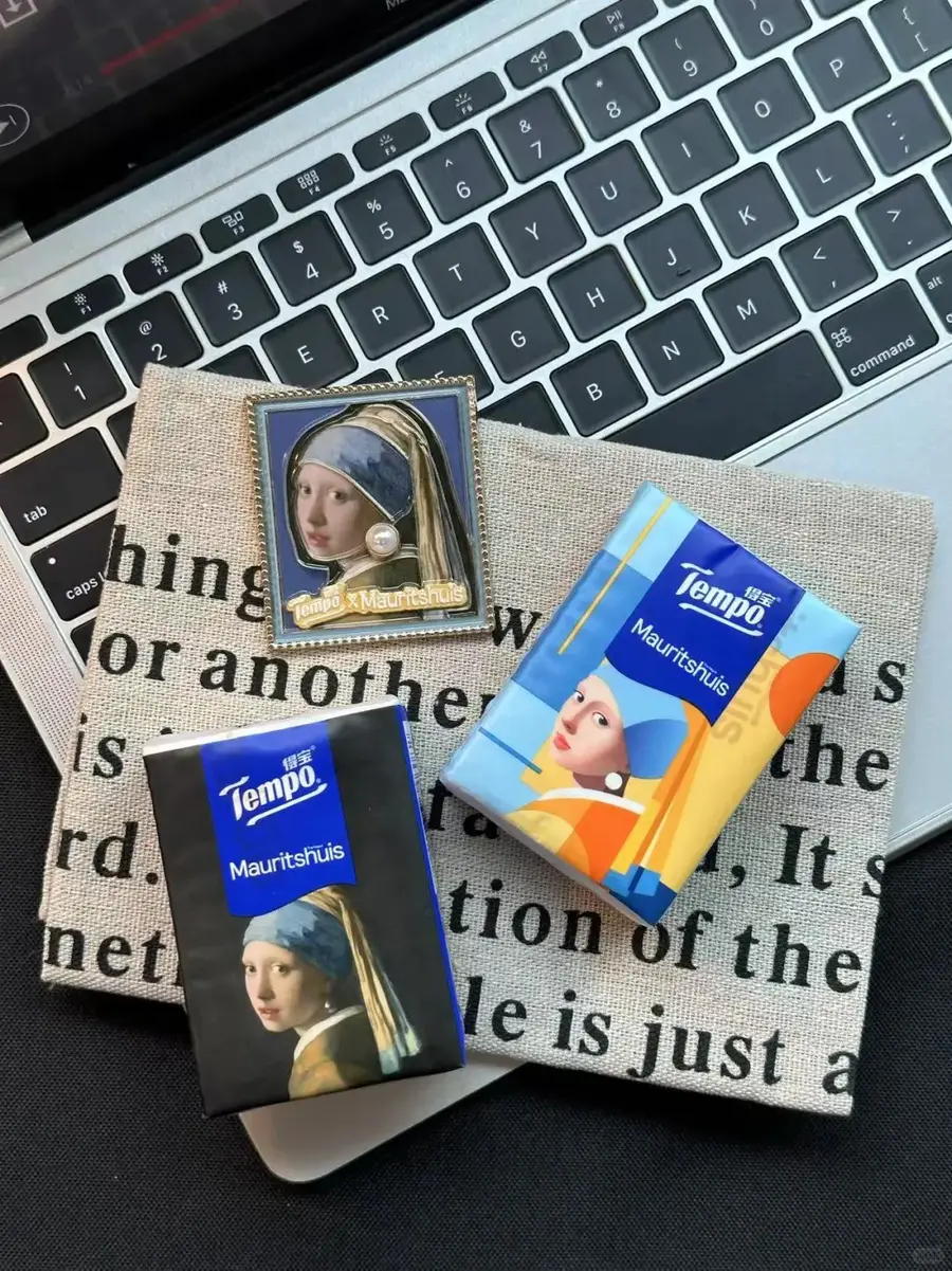 把名画印在巴掌大的手帕纸上,用纸都在像和艺术品贴贴👐~ 维米尔画下少女回眸的永恒瞬间, 三百年后的今天收到这份穿越时空的温柔慰藉☁️✨~