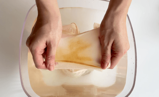 包括像很多纯棉底裆粘上血渍难洗、发黄的问题也化解了!我们用酱油模拟了污渍,轻轻揉搓就能去除。
