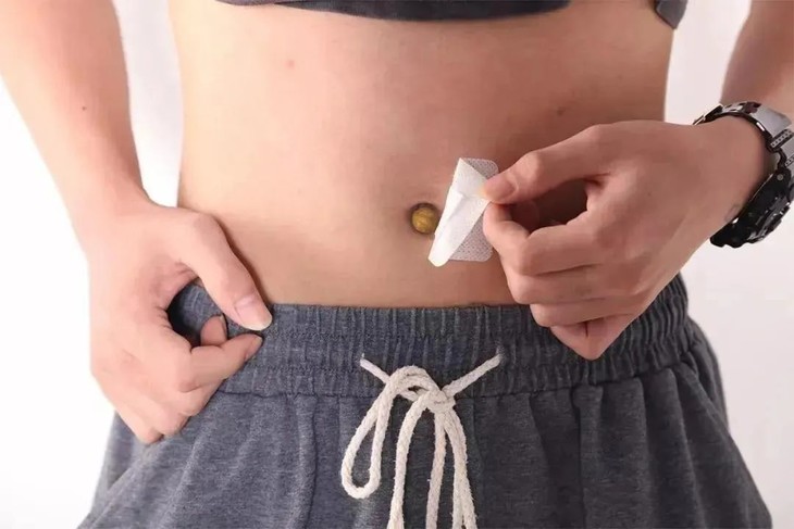 取一颗肚脐丸置于肚脐内