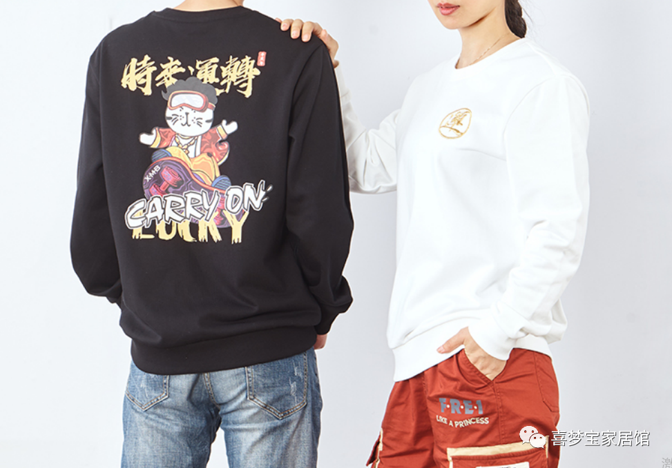时来运转国风款,经典的圆领卫衣休闲百搭,图案色彩鲜活潮流时尚,平整下摆收缩不透风,螺纹袖口舒适休闲,纯棉材质亲肤舒适,穿上去回头率满满呀。