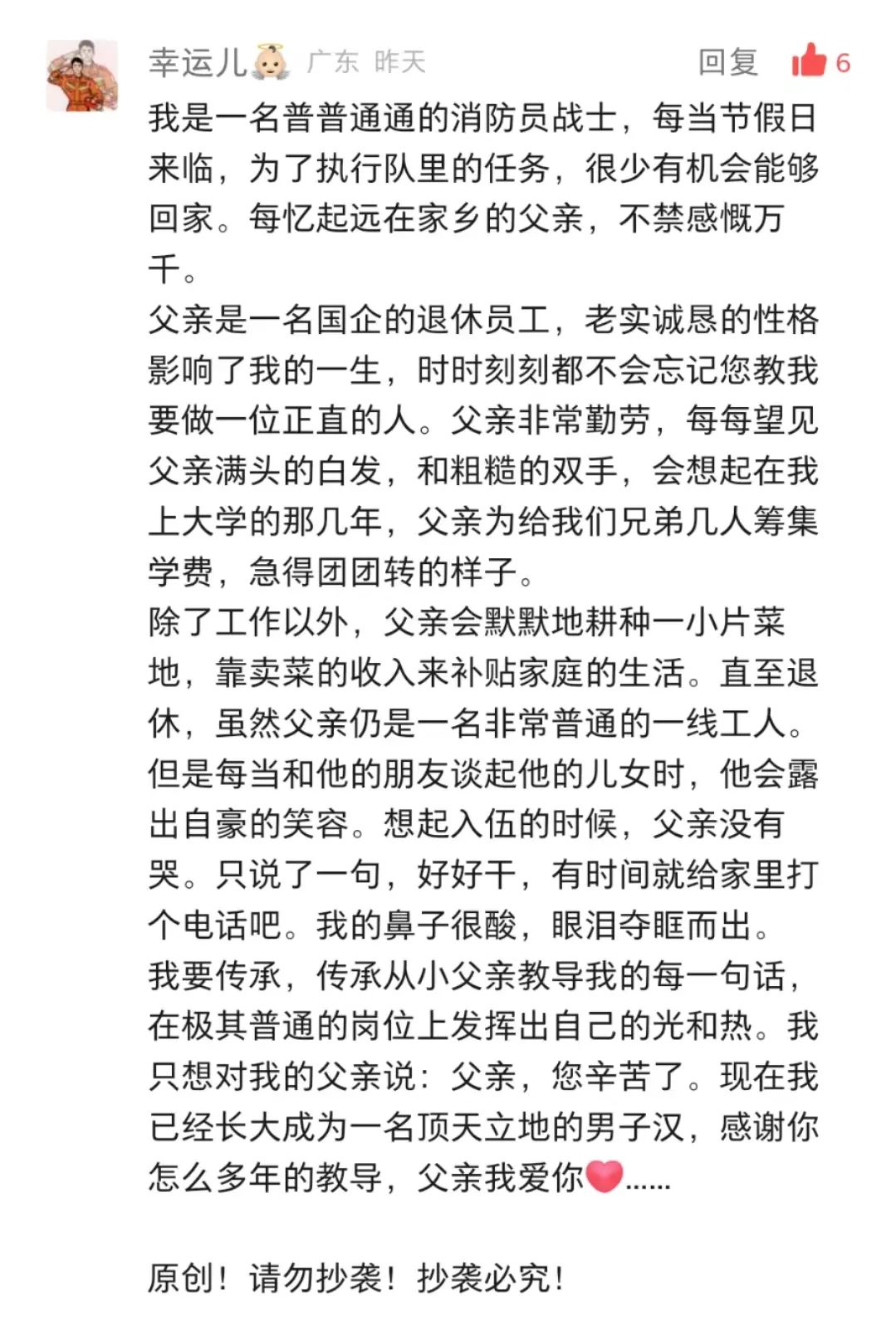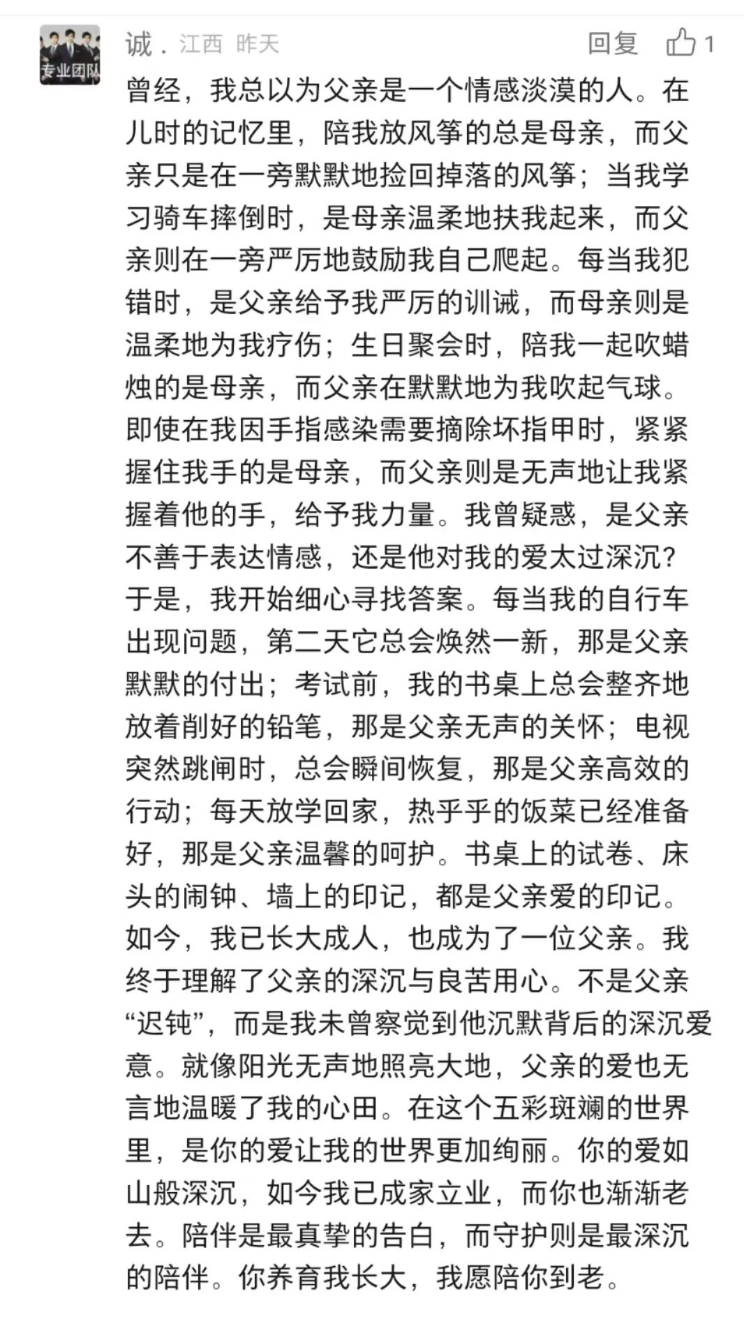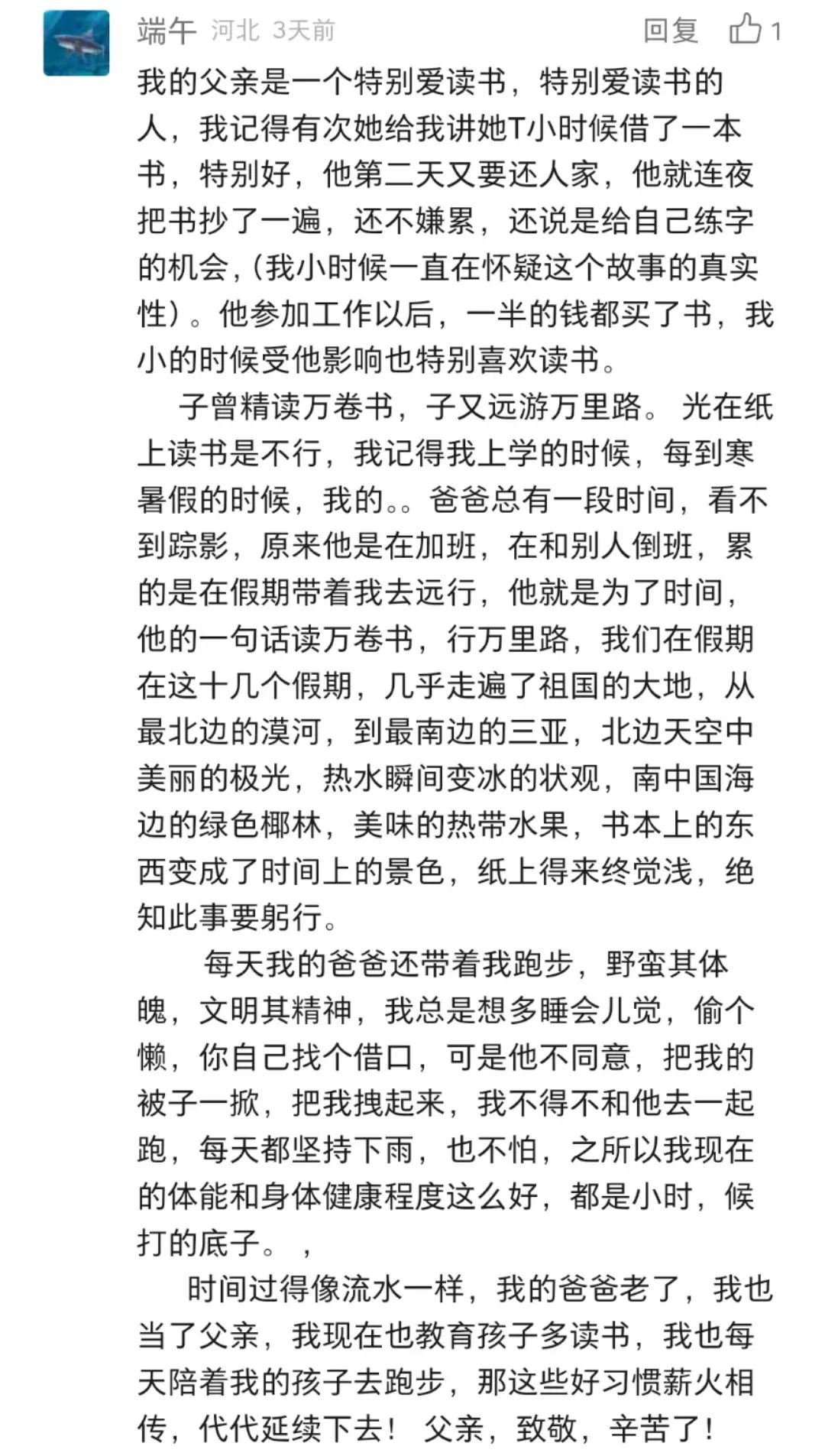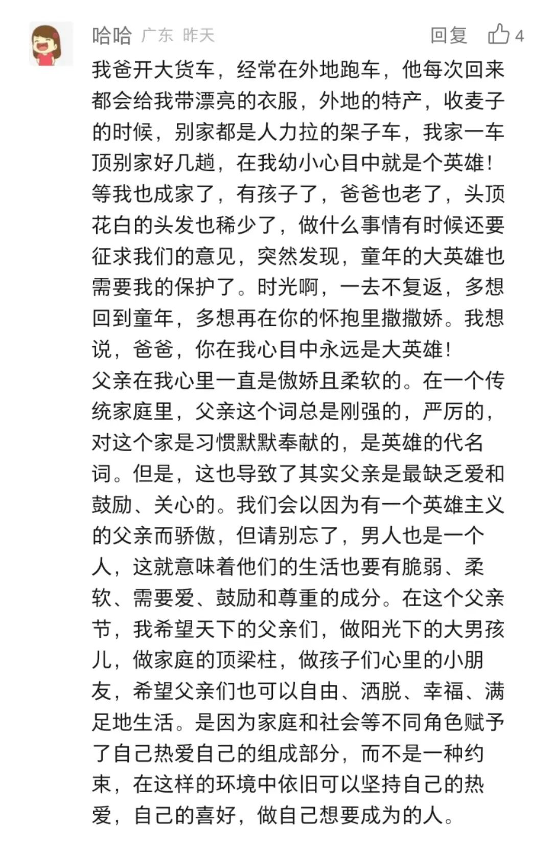 上一篇推文《父亲节——希望全天下所有的父亲都放松、喜悦、享受和家人相伴的时光》中,为了鼓励更多人说出对爸爸的爱意,我们设置了留言有奖活动~