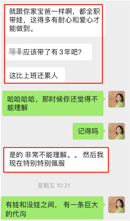 当年那个不能理解先生做全职爸爸的闺蜜现在怎样了呢?她呀,刚生了个娃,方才了解咱家爸爸的伟大,并特地在父亲节前向我表达佩服之情!哈哈哈~
