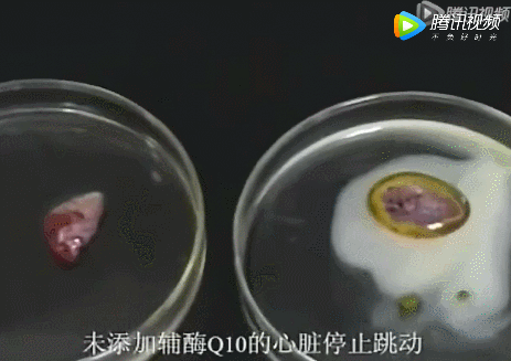 将两只牛蛙的心脏取出,一颗心脏摄入辅酶Q10,另一颗不摄入。20分钟后,摄入辅酶Q10的那颗心脏依然能跳动,而另一颗已经停止。
