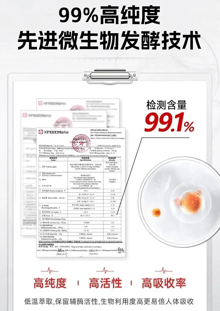 VIK辅酶Q10采用微生物发.酵技术,提取出99%高純高活辅酶Q10。