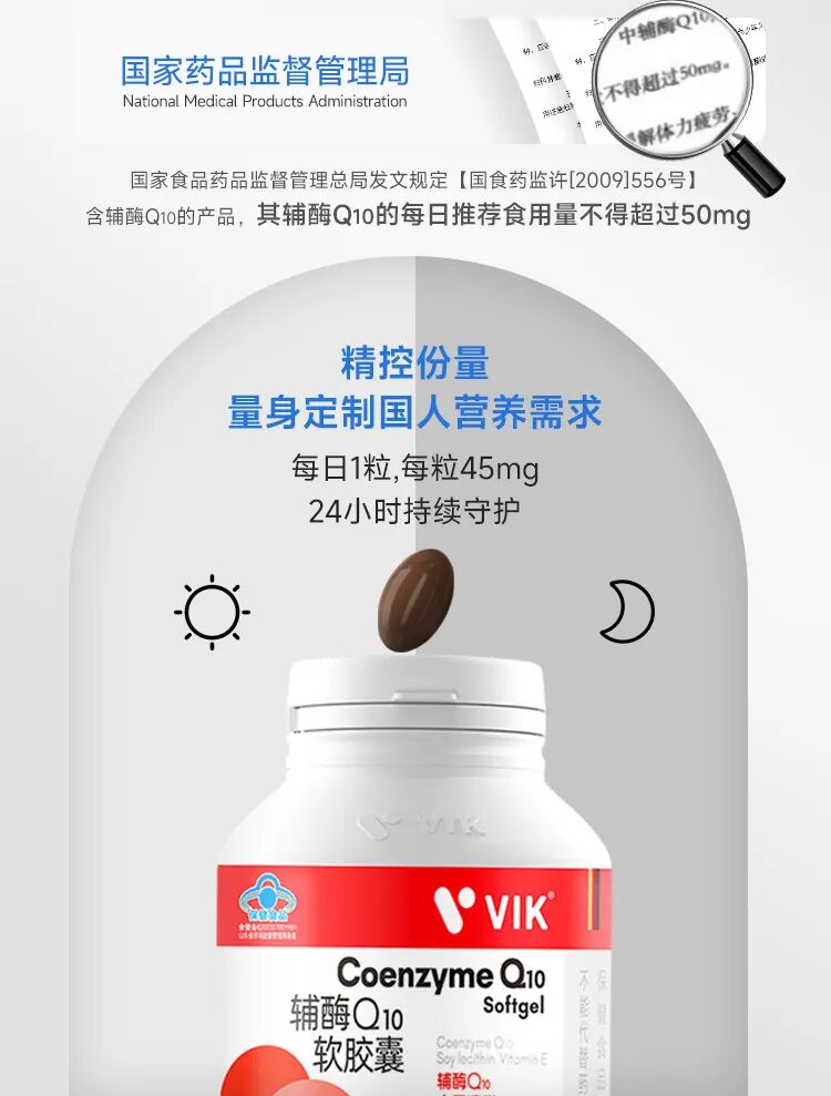 考虑到中老年朋友本身肠胃弱,吸收差,所以我们从含量、吸收度、食用反馈等多维评估,严选出一款有蓝帽认证、更适合咱国人体质的VIK辅酶Q10。