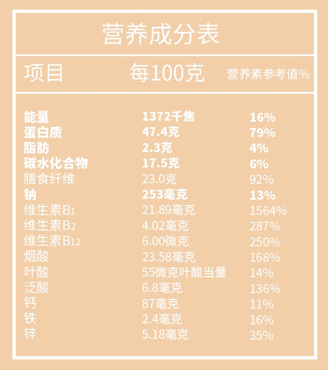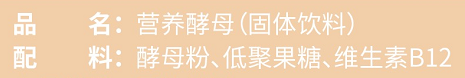 它的成分非常有营养——酵母粉、低聚果糖、维生素B12,没有防腐剂、香精、色素等不良成分,拒绝食品添加剂,营养无负担。
