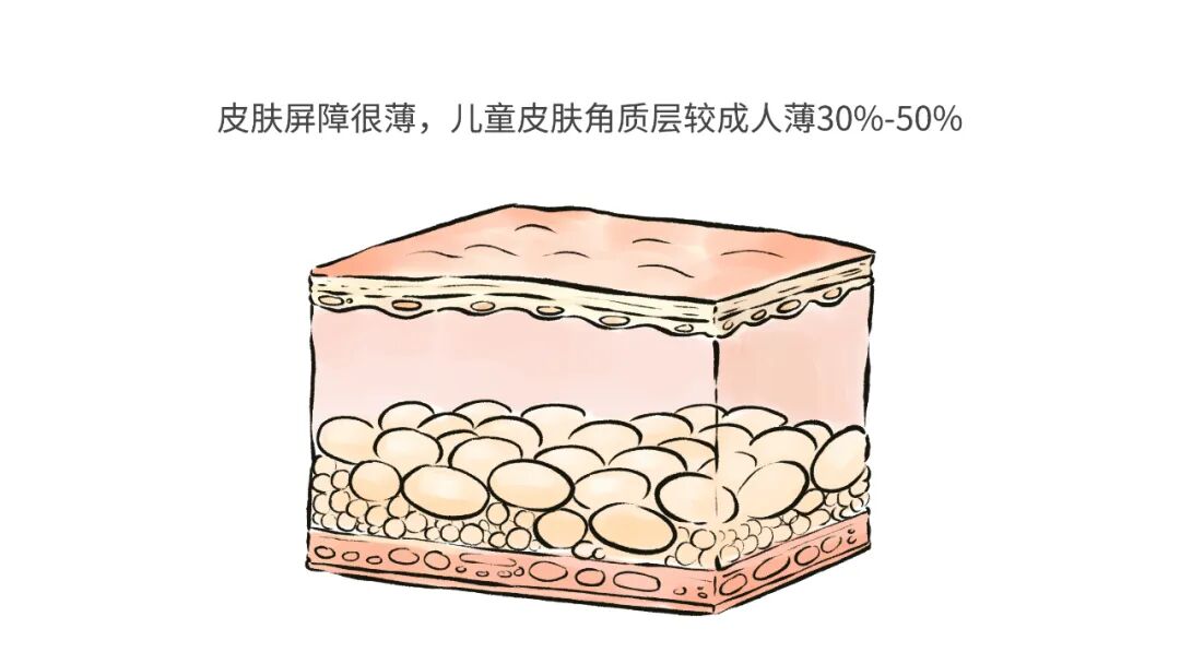 而且,孩子的皮肤屏障,比咱成年人薄得多,儿童皮肤角质层较成人薄30%-50%,锁水能力也差,更容易受到外界刺激和损伤。重点是,皮肤屏障受损后,旧有皮肤问题会「反反复复」出现。