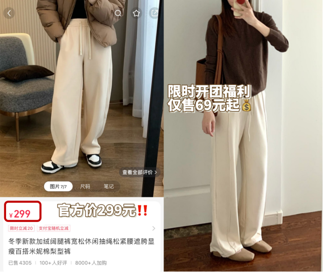 官方价299元/条,常规款只要69元、加绒款79元!