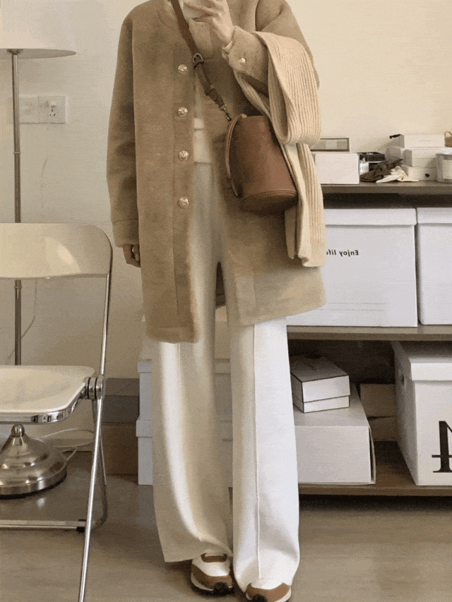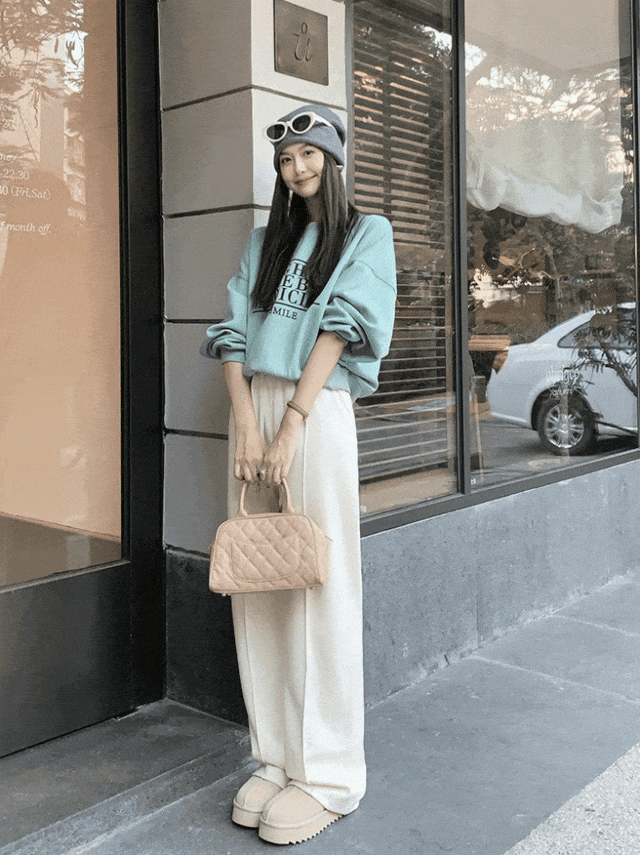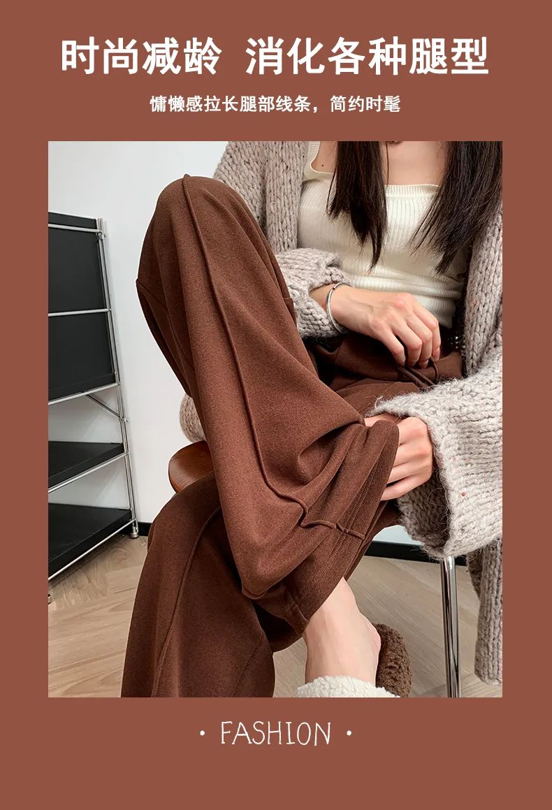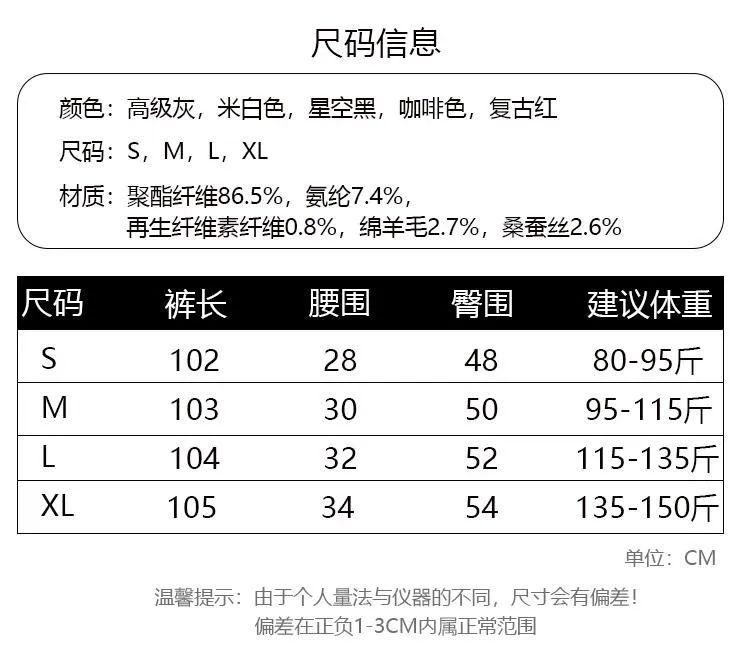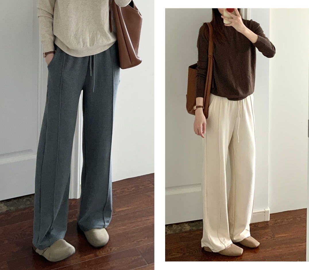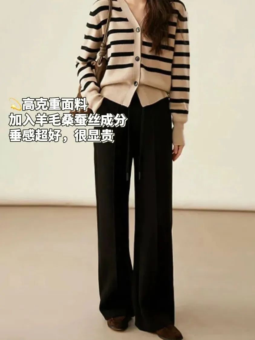 保暖性也帮大家考虑到了,还特别加入了羊毛和桑蚕丝成分,人手都要有的「高克重高腰阔腿裤」。