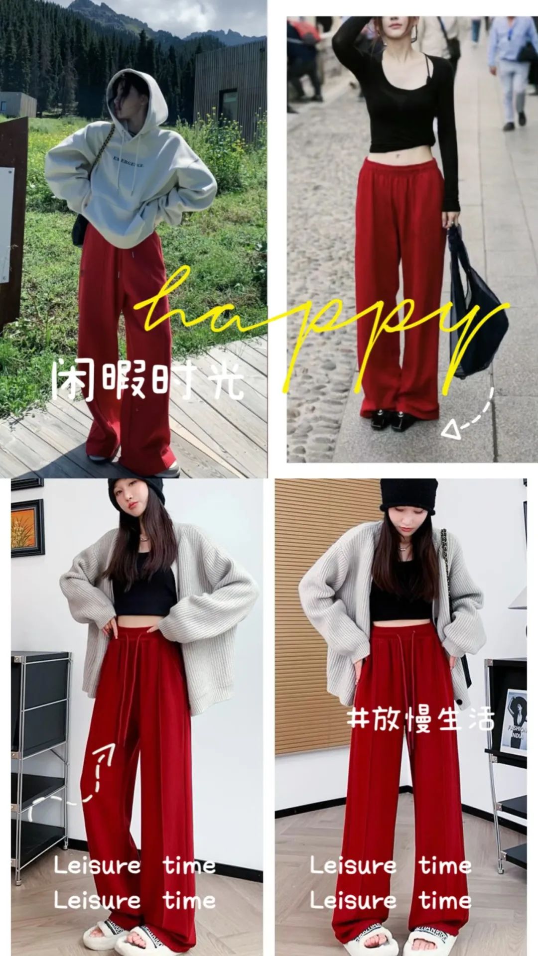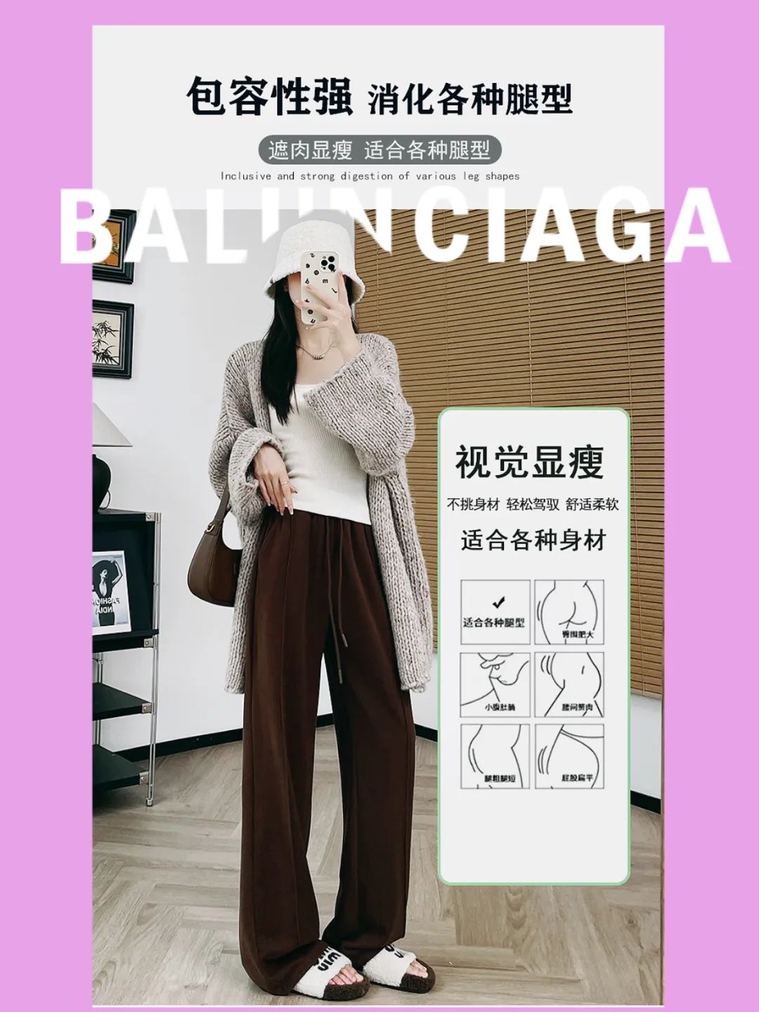 无论腿多肉、腿形多难看,宽松阔腿裤上身,秒显细直模特腿。