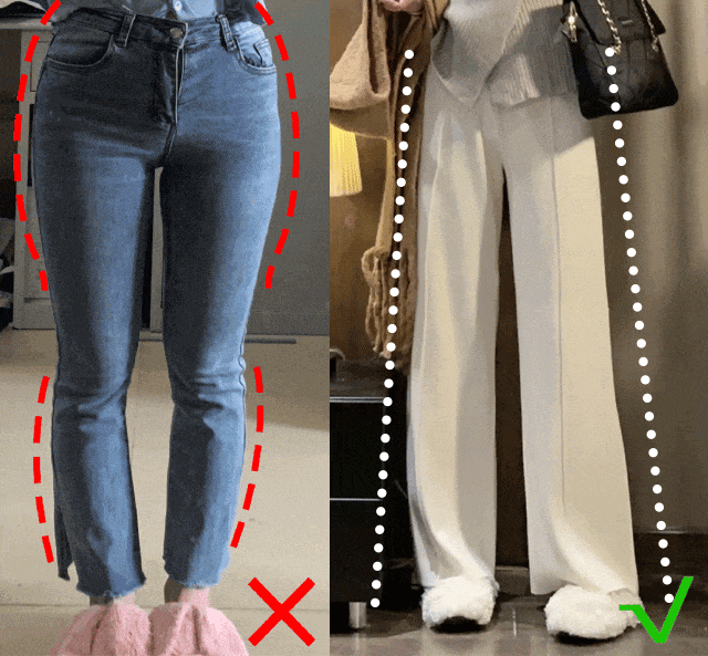 裤子穿不对就会显得膀大腰圆,或者是暴露了自身的腿型问题,导致整体的轮廓曲线不好看!
