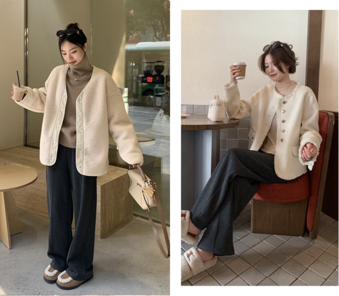 首先是秋冬穿搭不能错过的米白色和咖啡色。