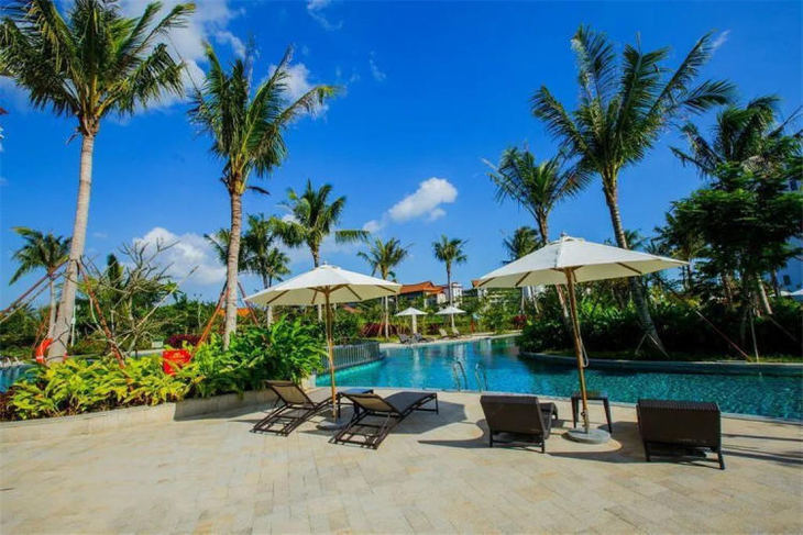超高的植被覆盖率让酒店看起来像一个大花园,其中有多种热带植被,让酒店看起来更加生机怏然。其中有馥郁芬芳的茉莉,有热情似火的三角梅,各色花儿争相斗艳。仿佛我们像置身花园中的蝴蝶一样,享受着美丽的热带天堂。热带雨林环抱的沙滩绵延17公里,让您漫步沙滩悦享海上日出、日落的绚丽景观。
