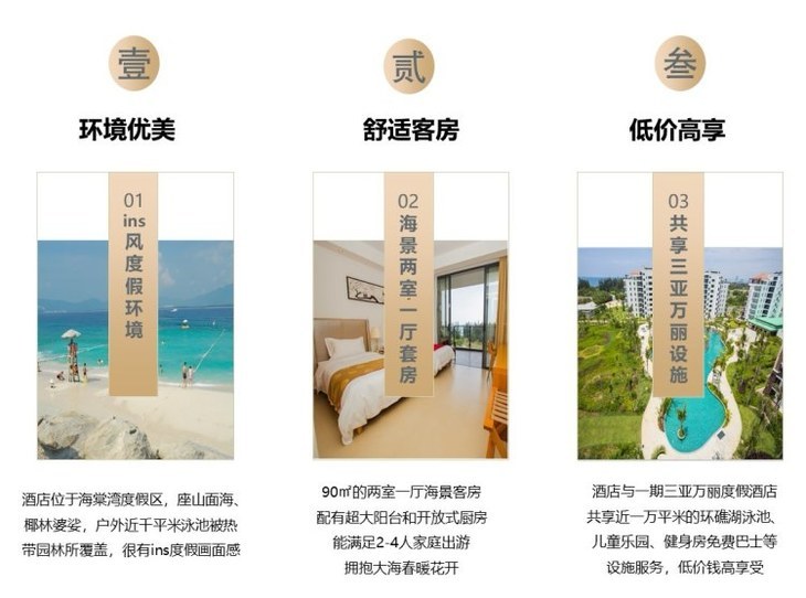1.海棠湾三大亮点:高端大气,全豪华品牌酒店!冲浪圣地,沙滩海水质量高!疯狂血拼,人人都爱免税城!海棠湾景象万千,由于远离城市,大部分区域没有开发,一种原生态的美使海南三亚市旅游独具魅力。十九公里长的岸线风光旖旎,河道如网,绿洲棋布,芳草萋萋。海棠湾南与亚龙湾国家旅游度假区相邻,集碧海、蓝天、青山、银沙、绿洲、奇岬、河流于一身。