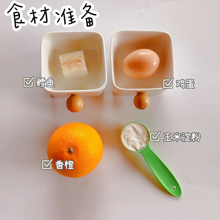 香橙、鳕鱼、鸡蛋、玉米淀粉