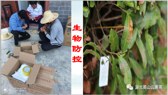 在茶园病虫害方面大别茶访建有自己的虫情监测站和农业气象观测站,采用了降解诱虫黄板,太阳能杀虫灯,诱捕器多种物理防控手段,近两年还引进啮小蜂和赤眼蜂对主要病虫害进行生物防控。同时,结合生物农药进行无人机飞防,效果非常不错,从源头开始控制的方式,为保证茶叶质量起到了关键作用。