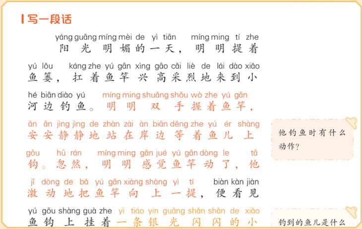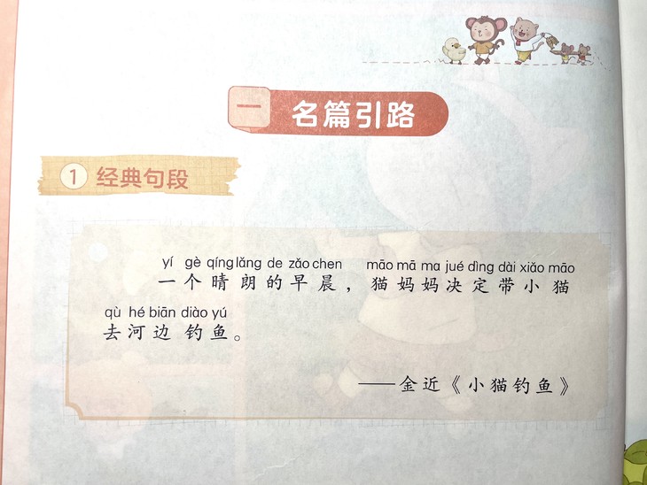 比如小猫钓鱼这个真题,开篇故事用提问的形式让孩子引发思考,接着引用了作家金近的《小猫钓鱼》片段:“一个晴朗的早晨,猫妈妈决定带小猫去河边钓鱼”
