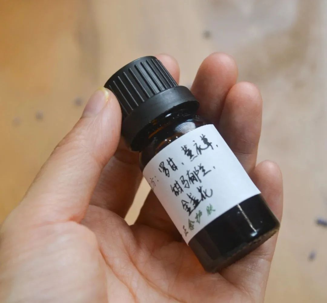 湿疹护理油配方:金盏花油20ml,罗马洋甘菊精油3滴,薰衣草精油10滴,甜马郁兰3滴