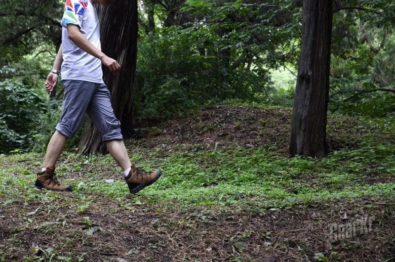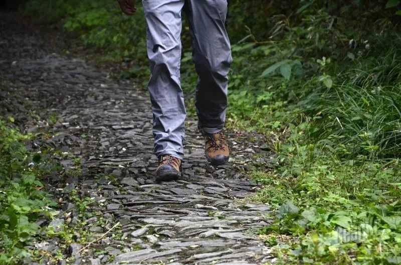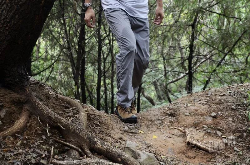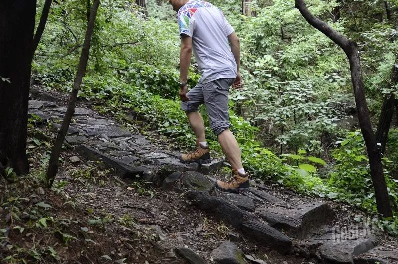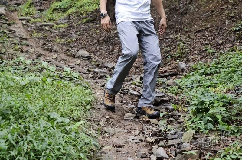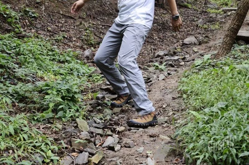 在碎石路段下山时,采用侧向方式,能够感受到脚掌外缘的抓地力,有效抵住松散的碎石,避免滑动。