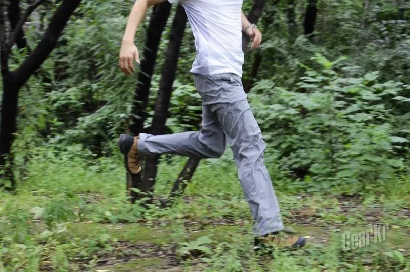 在自然路面攀登,特别是松软路面,鞋底的反馈变得不太清晰,这是由于橡胶与土和腐殖质的摩擦力变小的缘故。前掌蹬踏发力也能获得前进和向上的动力,具有弹性的大底橡胶带来良好的支撑能力。