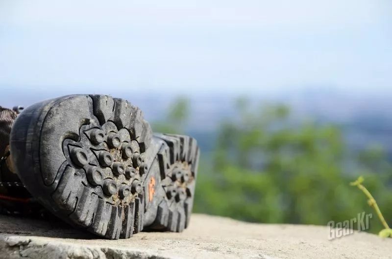 在凹凸不平的路面行走,鞋底厚的好处就显现出来,这也是软性橡胶的优势。脚底下踩,可以感觉到石块突起的棱或尖,但又不会觉得硌,就当是长途跋涉的足底按摩了。由于齿耳都比较大,也没有出现划痕划伤。