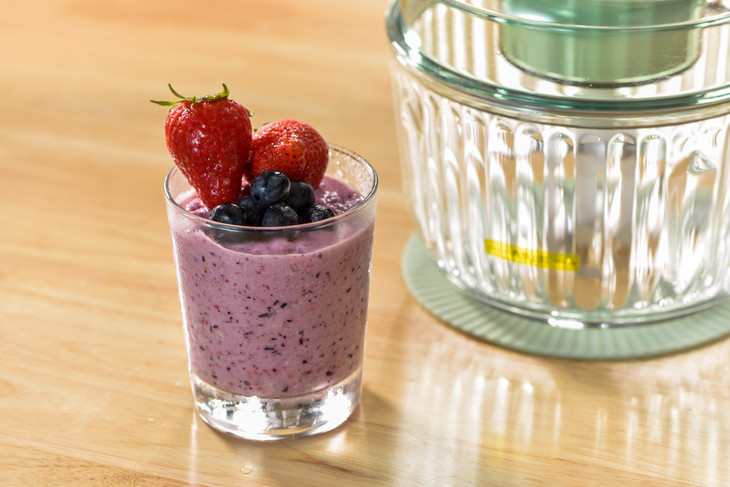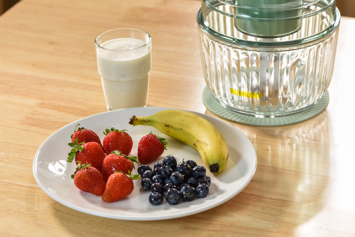 1、将草莓、蓝莓、香蕉洗净,草莓去蒂。