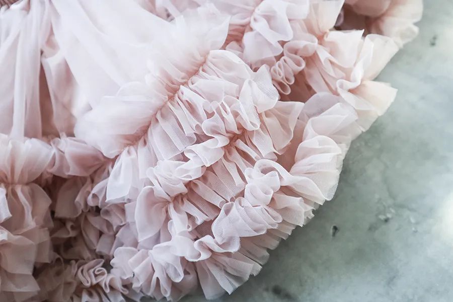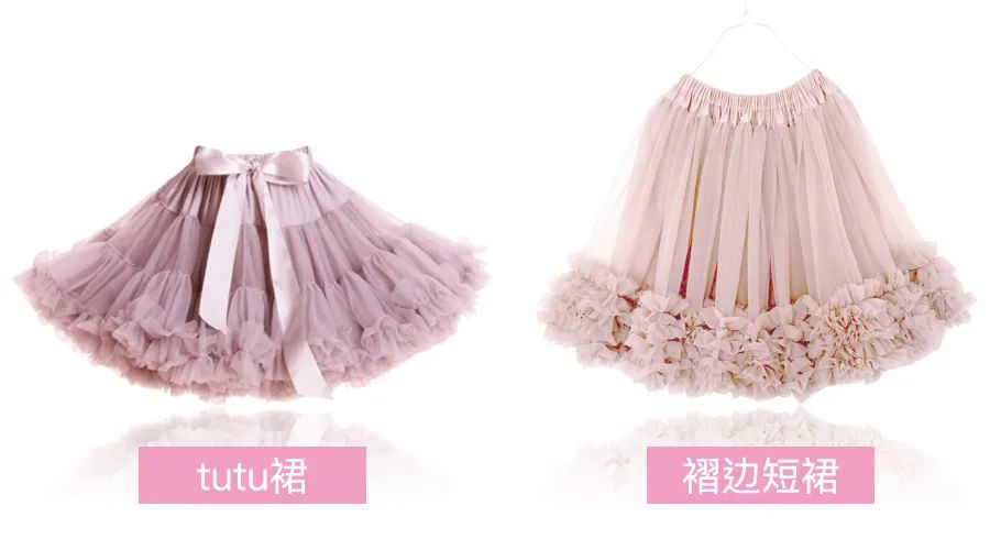 褶边裙由一层衬裙、一层纱裙和三排花边构成,比tutu裙更简洁优雅。