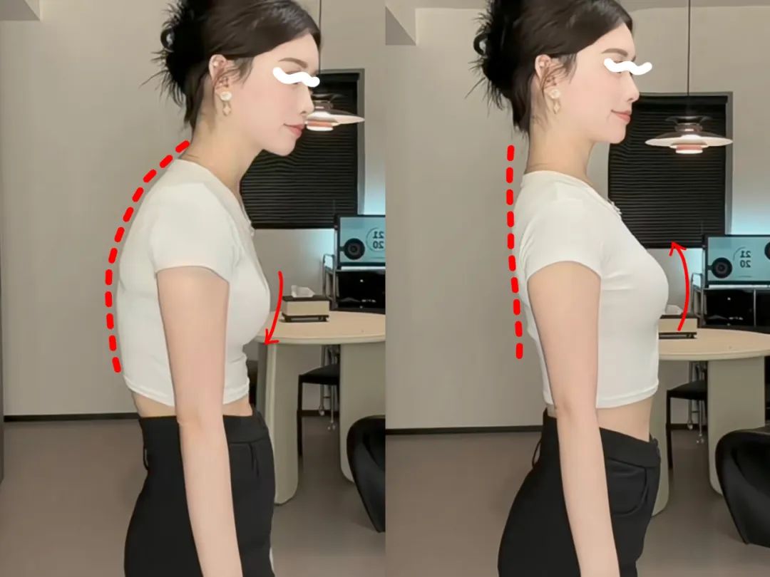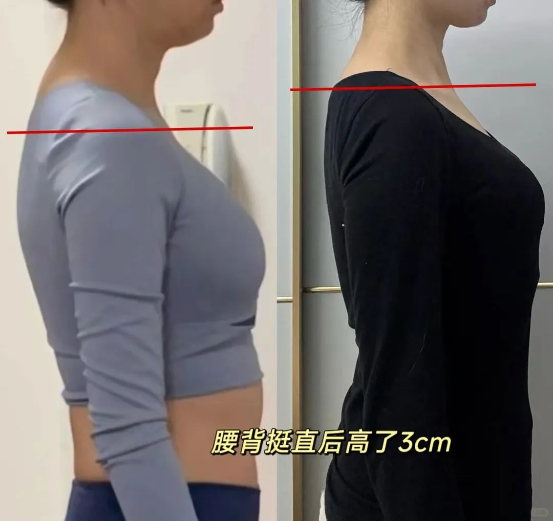 不只是开肩挺背,因为仪态不对,随之而来的含胸驼背、脖子前倾、溜肩、斜方肌问题也能看到改善。