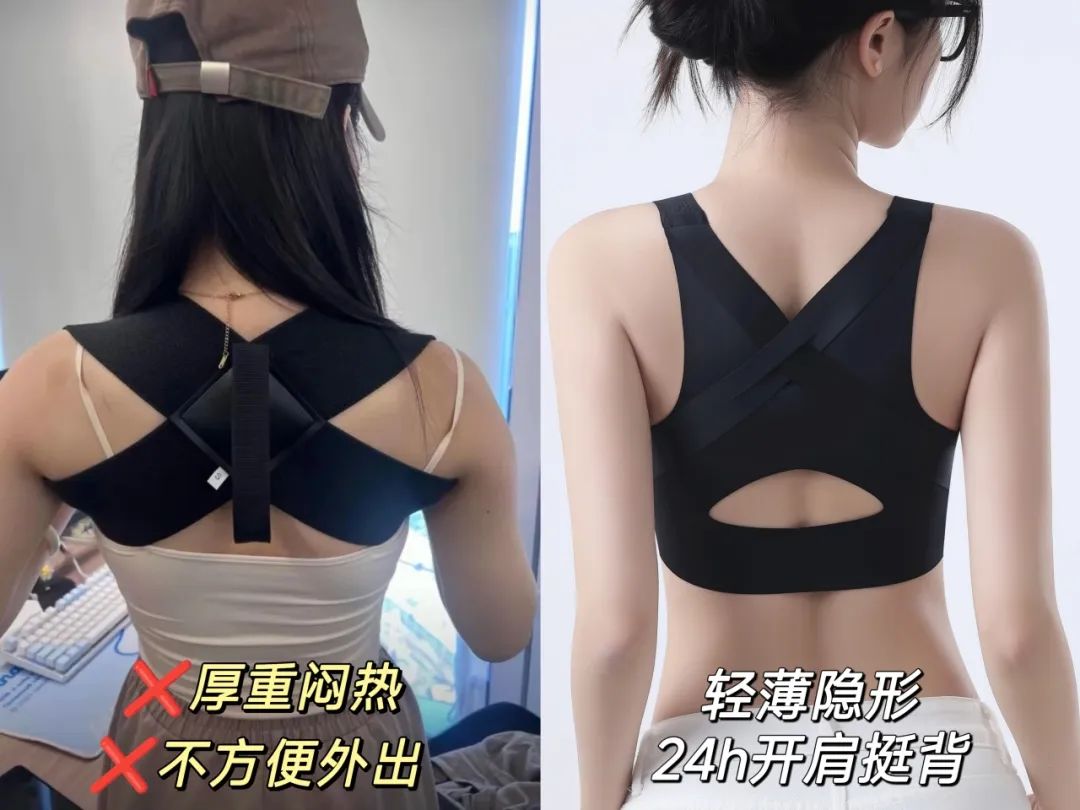 普通矫姿衣带又厚又勒,需套在衣服外面,还总忘记戴。矫姿内衣可以24h穿在身上,可以时刻辅助矫正体态。