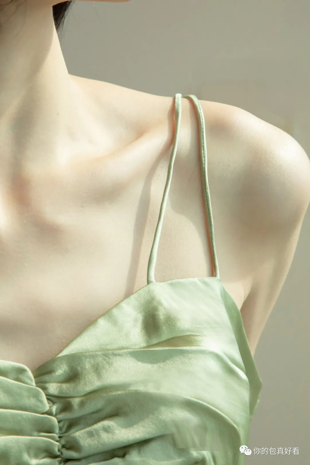 Slip dress这两年有多火不用我说了吧,又能单穿又能做内搭简直是时髦人必备的单品!这件真丝睡裙也是被工作室小伙伴们追着问链接的一款,它的颜色很温和,融合了夏日阳光穿透积云呈现的奶油白,像绿叶反光后清爽又有活力的一种绿,浪漫而又治愈。