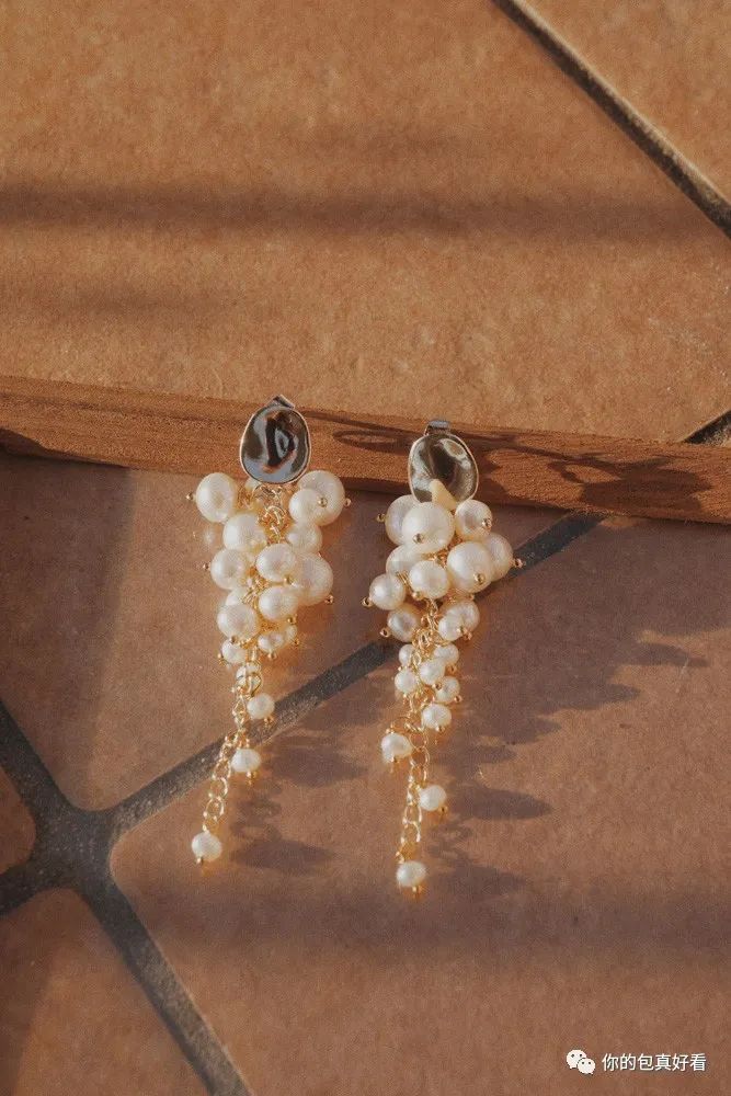 还有这款名为酒神的葡萄的珍珠耳环,有着强烈的宫廷复古感。采用天然珍珠和超薄镀金片,关键一点也不坠耳!日常搭配白衬衫或者小西装都超显气质,优雅的氛围感一下子拉满。