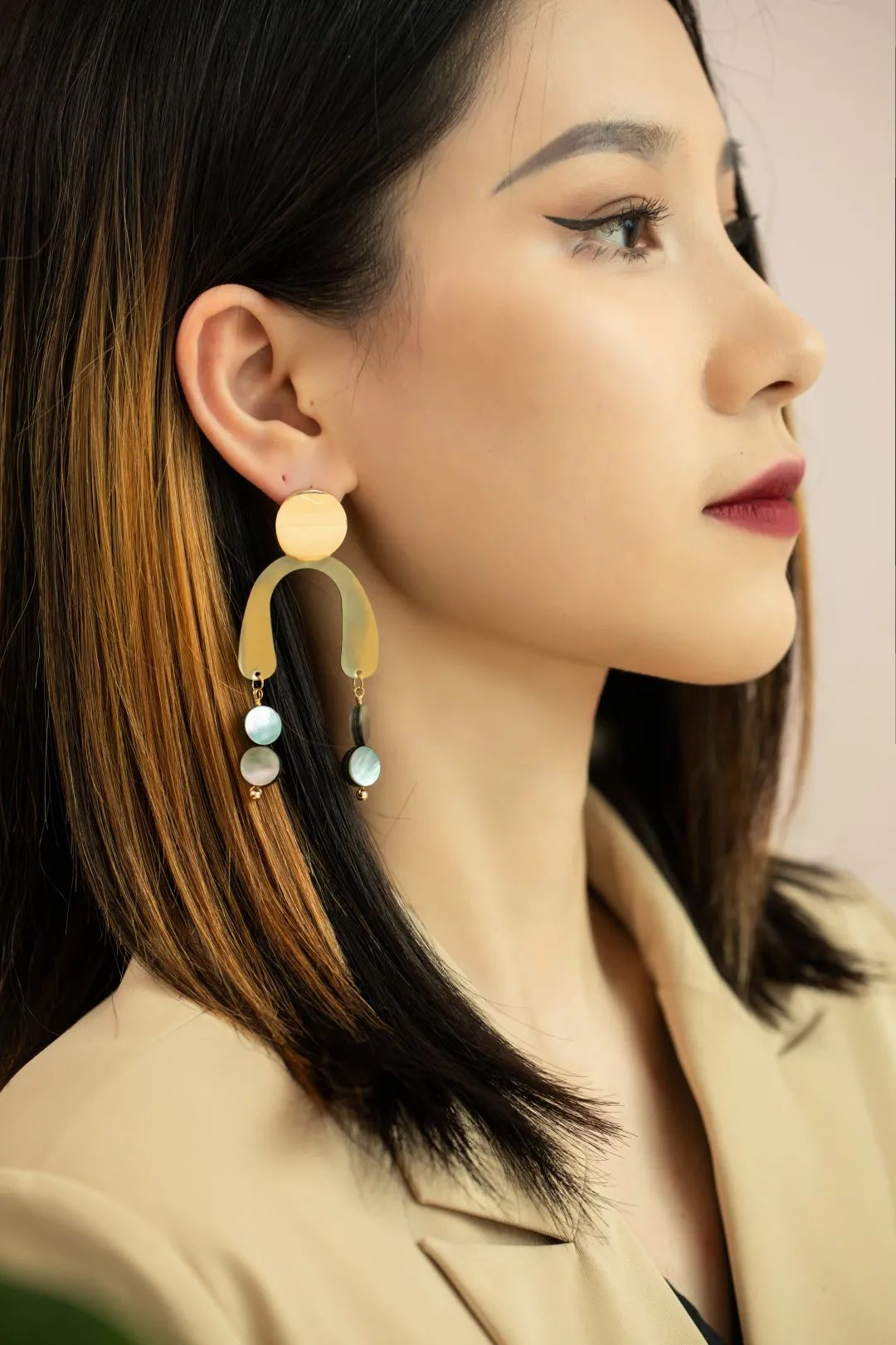 荣耀派对这款也获得小伙伴高度好评,卡卡之前就好像有类似的款式,小众U型的设计造型感极强,银色贝母点末端缀带点异域风情的自由感。也可以很好地修饰脸型。