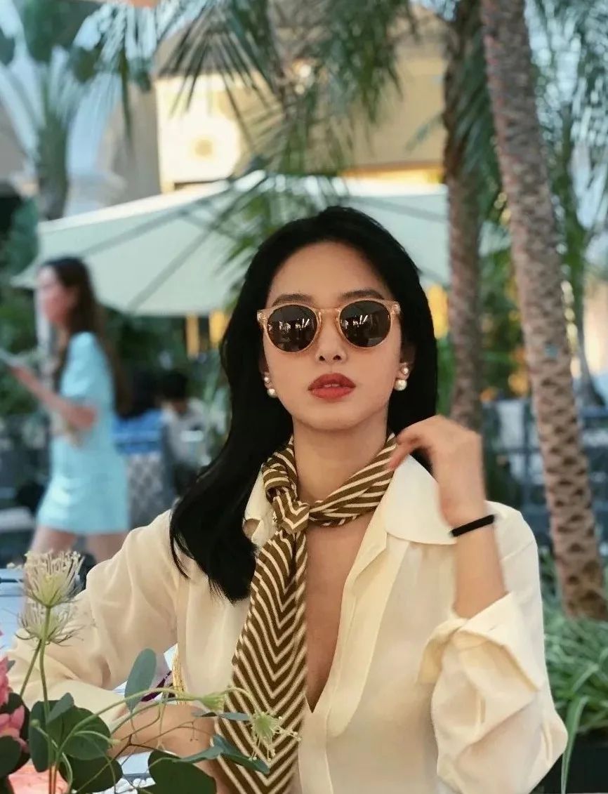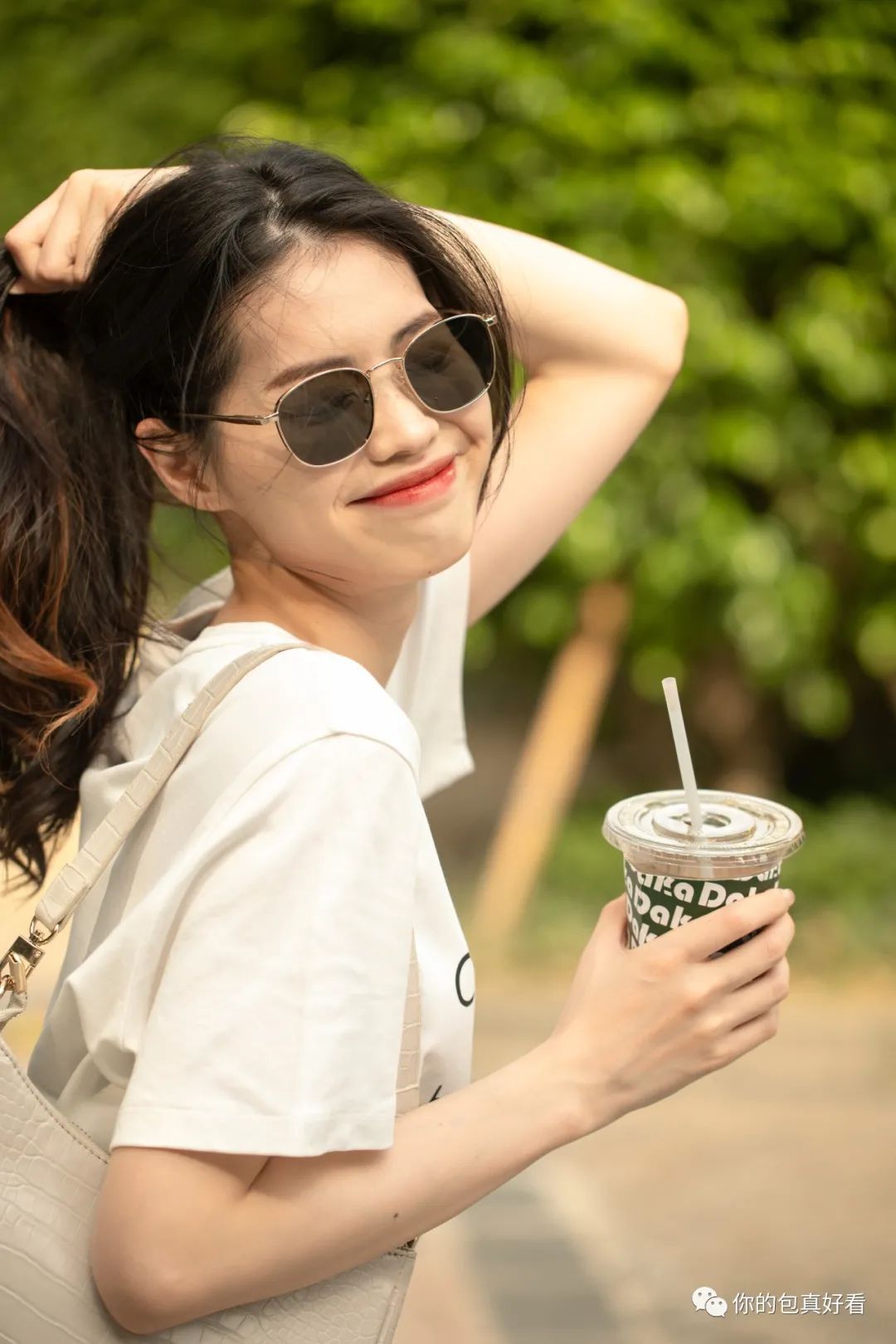 但最近天气越来越热,我也越来越喜欢穿T恤出门,感觉这样会比较清爽一点。看到欣欣子的这张图片,瞬间被墨镜种草!