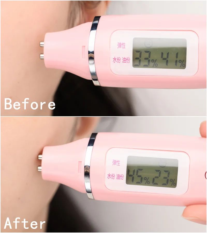 看看yoyo使用前后的对比,油光消失,毛孔看起来也清透了不少▼