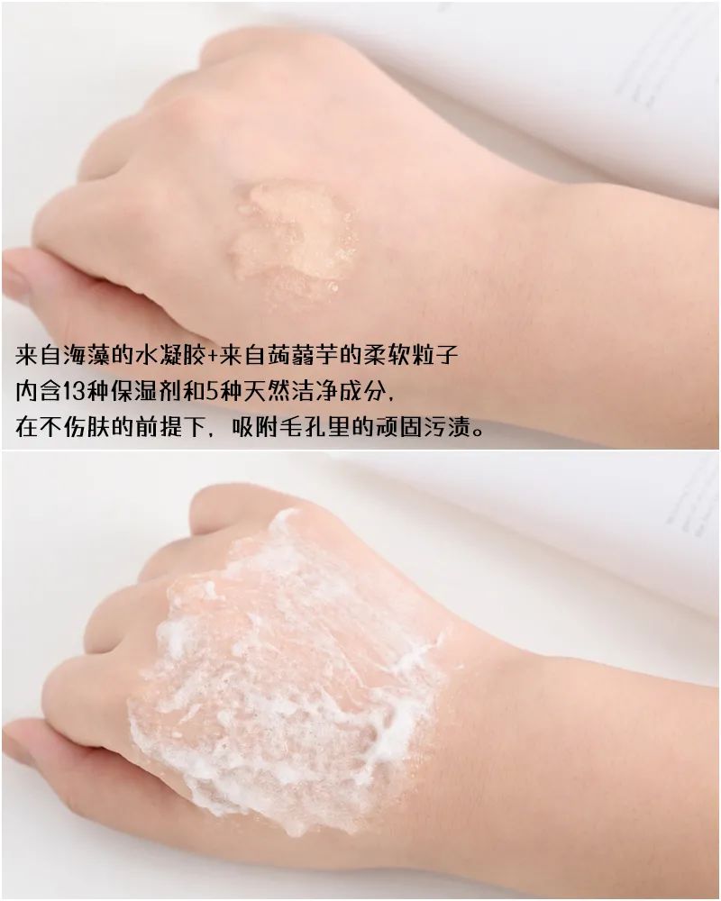 一开始担心里面有磨砂颗粒不好起泡,没想到加水稍微一搓,很容易就起泡了。而且磨砂颗粒用在脸上感觉挺舒服的,不会觉得粗糙、刮脸。▼