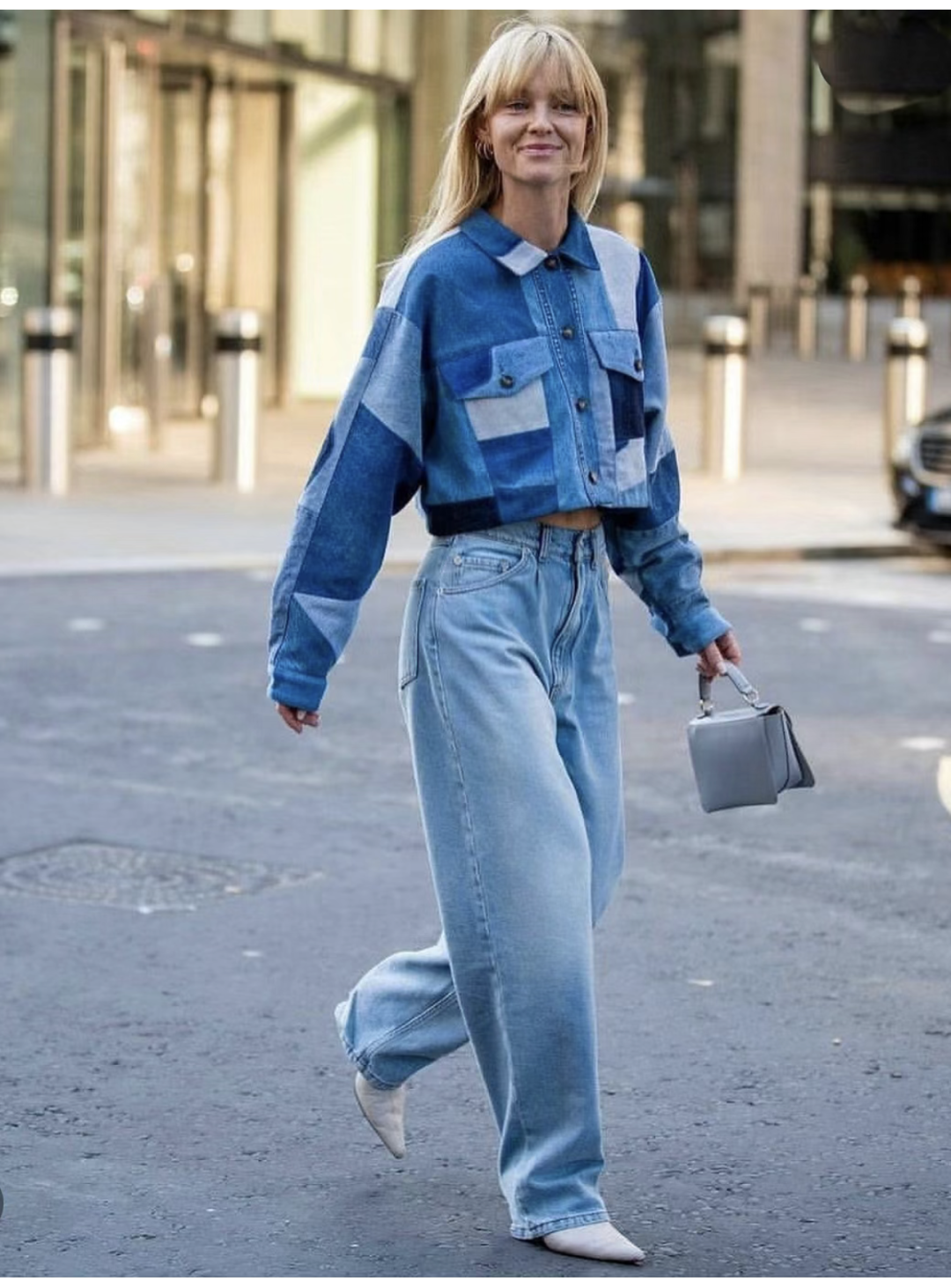 牛仔拼布或者牛仔印花的单品,也可以增加全牛仔配搭的层次感。