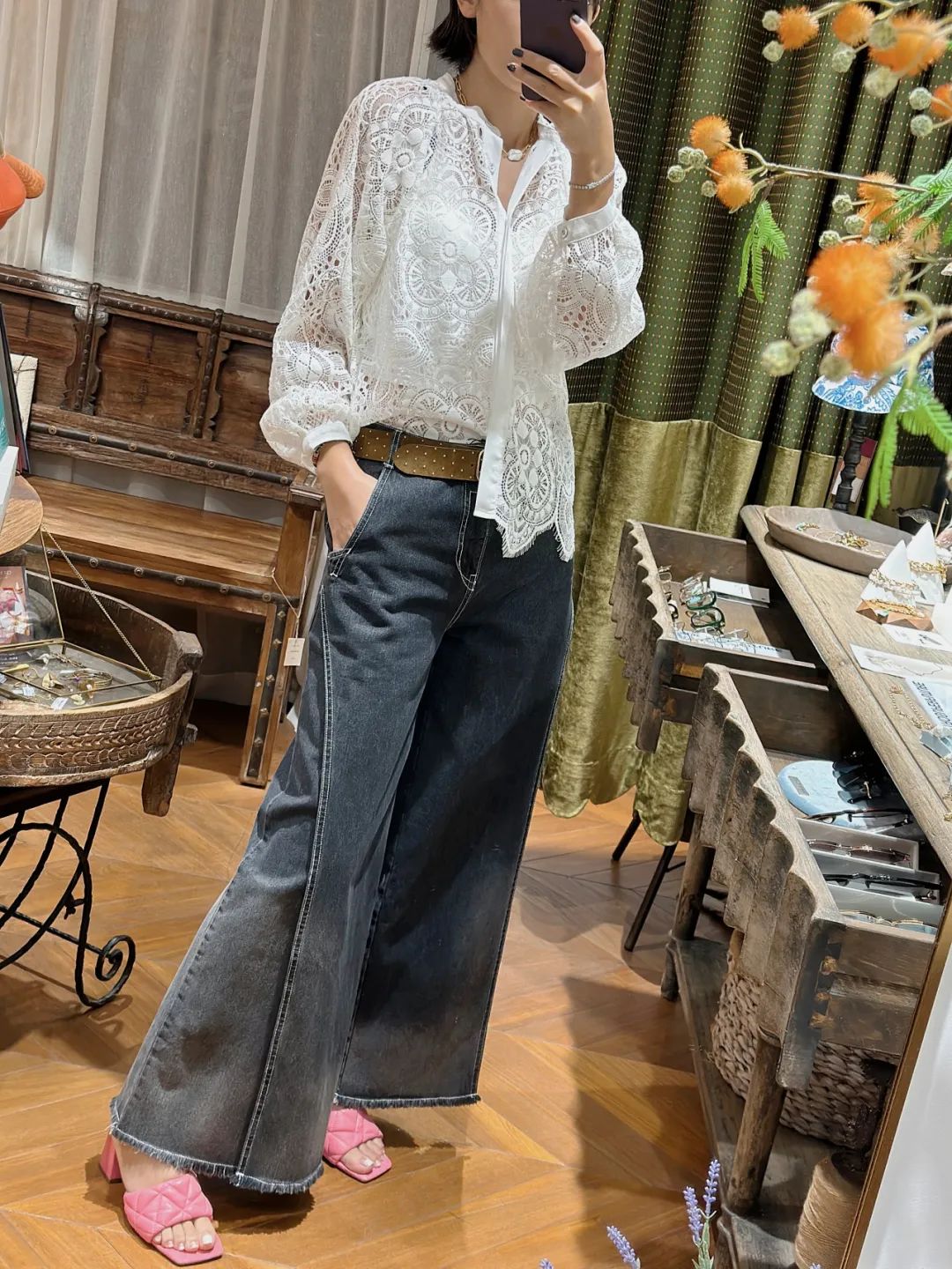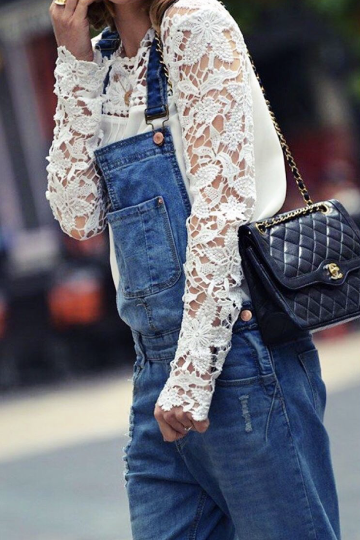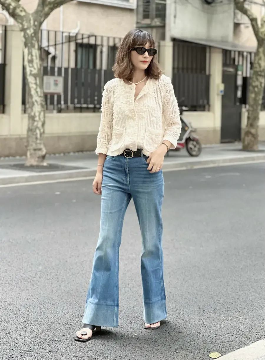 如果想要增加一些浪漫和女性化的气息,可以选择蕾丝或者薄纱的白衬衫,与牛仔裤相映成趣,既有率性又有柔美。